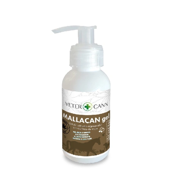 El gel regenerador de piel a base de Aceite de semillas de Cannabis Sativa para animales MALLACAN, de rápida absorción, ayuda a aliviar los síntomas de la piel seca y rugosa, con irritación o tendencia a agrietarse.
